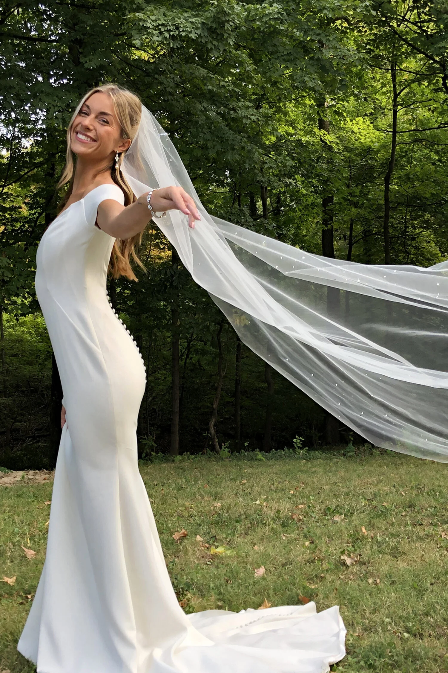 This length is one of our most popular length right now! Cathedral veils measure 108 inches in length like our bestselling "Traveler" veil.